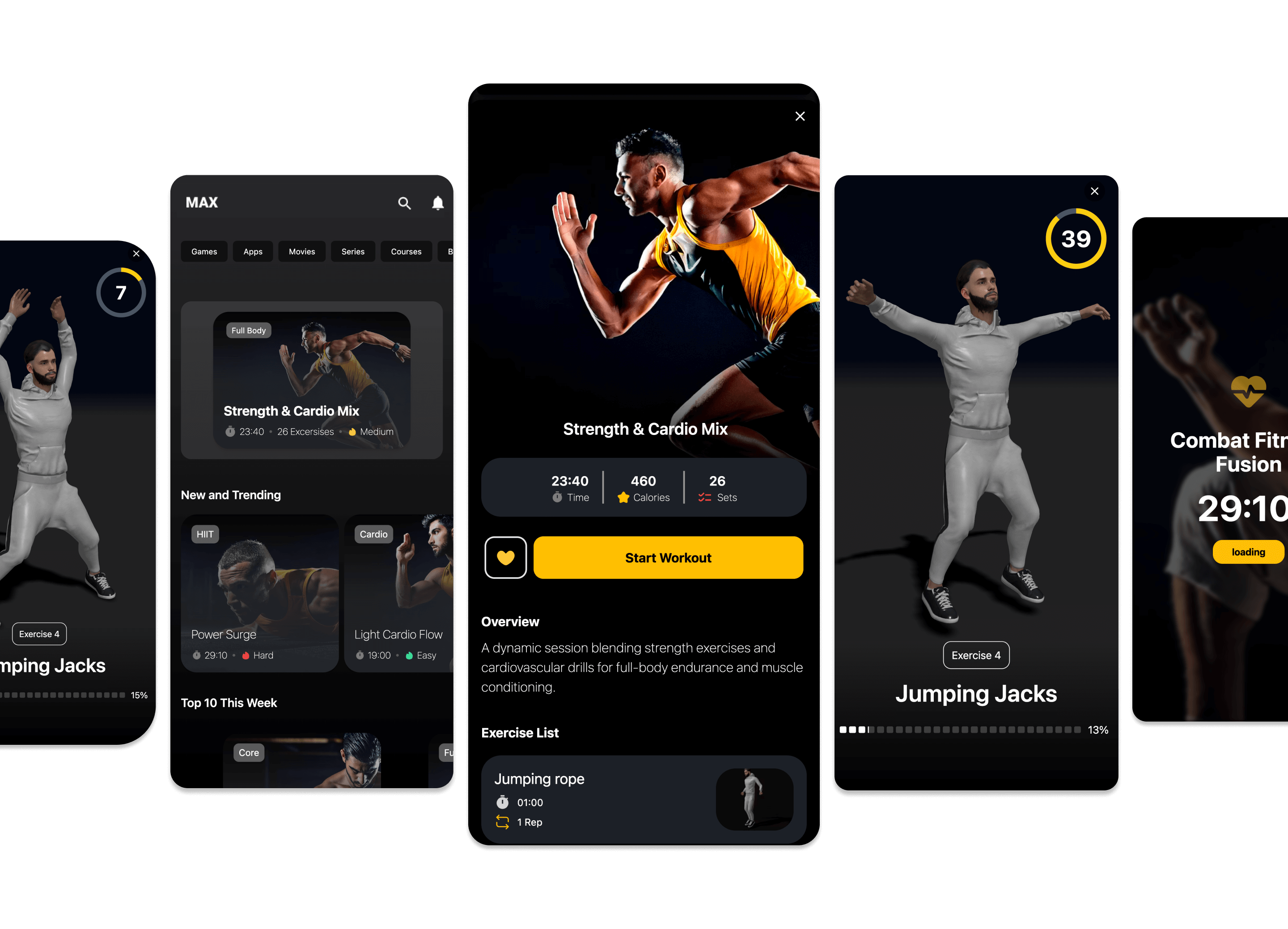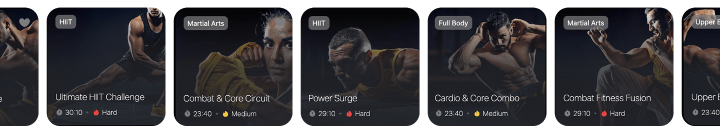 Browse all available workouts, including full-body routines, quick sessions, and goal-based programs, all designed for home training using 3D guidance.